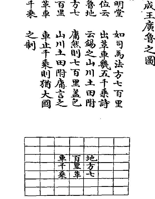 如《司马法》,方七百里出革车几五千乘。《诗》云:"锡之山川,土田附庸。"然则七百里盖包山川、土田、附庸言之,车止千乘,则犹大国之制。(见书3178页)